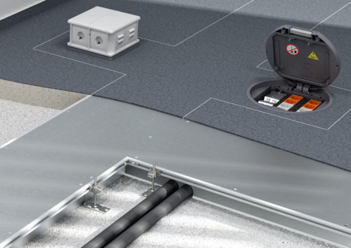 Valurasiat avattaville lattiakanavilleKanavat voidaan avata koko pituudeltaan joten ne sopivat erinomaisesti asennuksiin, joissa johdotuksia pitää muuttaa tai lisätä. Kanavaan asennettavat valurasiat asennetaan kanavan viereen, jolloin saadaan mahdollisimman suuri hyötypoikkipinta-ala kaapeleille. Tällöin tulee asennussyvyydeksi varata vähintään 80mm, jotta kojerasiat ja pistotulpat mahtuvat suljetun kannen alle. Kanavan kanteen on saatavana myös aukkokansi, johon lattiarasia voidaan asentaa. Lisätietoja PDF-esitteen sivuilla 4, 14 ja 16.Lattiarasia harmaa 1418180Lattiarasia musta 1418182