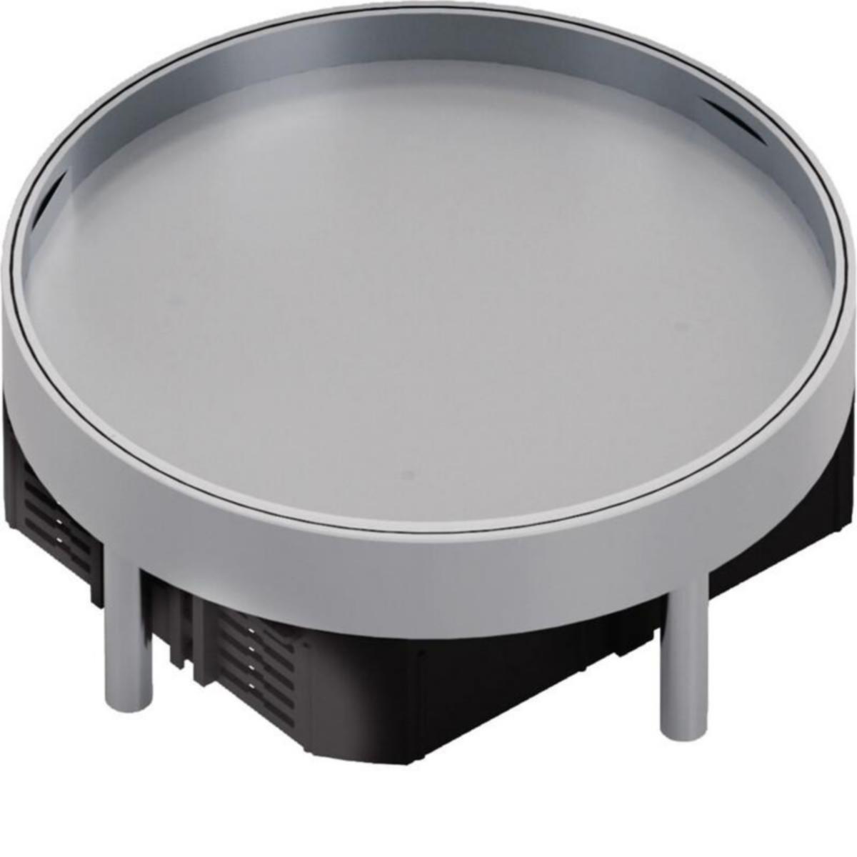Korkeussäädettävä kasettityyppinen lattiarasia umpikannella tarkistusluukuksi. Kannen maksimi kuormitettavuus on 20kN ja kansi on varustettu 15 mm lattiapinnoitesyvennyksellä. Valmistusmateriaali ruostumaton teräs. Tämä pyöreänmuotoinen rasia koostuu kasettikehyksestä, umpinaisesta kasettikannesta ja tiivisteestä. Tuotetta voidaan käyttää kaikentyyppisissä lattiarakenteissa kuivissa sisätiloissa, joissa on kuiva- tai märkäpuhdistettava lattiat. Tiiviste voidaan vaihtaa, jotta tiiveysluokka voidaan taata koko elinkaaren ajan. Lattiarasia voidaan varustaa kojerasioin, joiden asennuskorkeus on valittavissa portaittain. Rasiaan voidaan varustaa parhaimmillaan kuudella 45 x45 mm mitoitetulla kojeella. Testattu standardien DIN EN 50085-1 ja DIN EN 50085-2-2 mukaisesti.