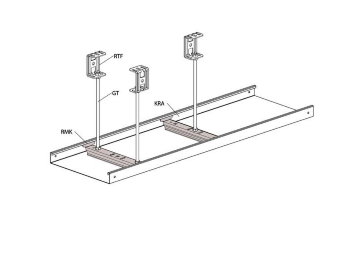 Keskikannakkeella RMK tehdään levyhyllyjen KRA ja KRB sisäpuolinen kannatus yhdellä tai kahdella kierretangolla.