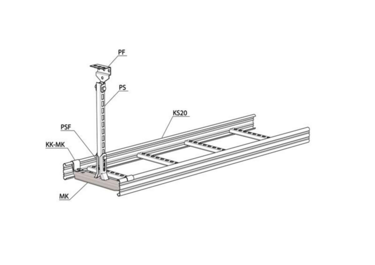 Keskikannakkeella MK tehdään kannakointi sisäpuolelta tikashyllyille KS20 ja KS60 yhdellä tai kahdella kierretangolla GT.
