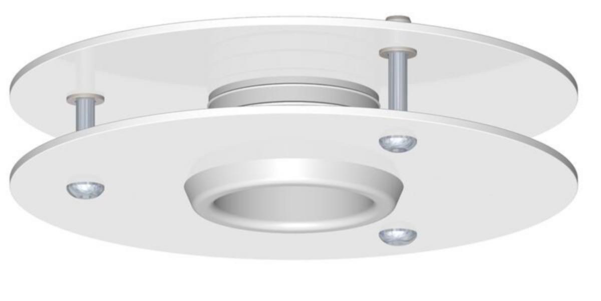 Läpivientikaulus PKK-T150, Ø=50/150 mm, valkoinen. Materiaali alumiini. Alaslasketun katon läpivientien viimeistelyyn.