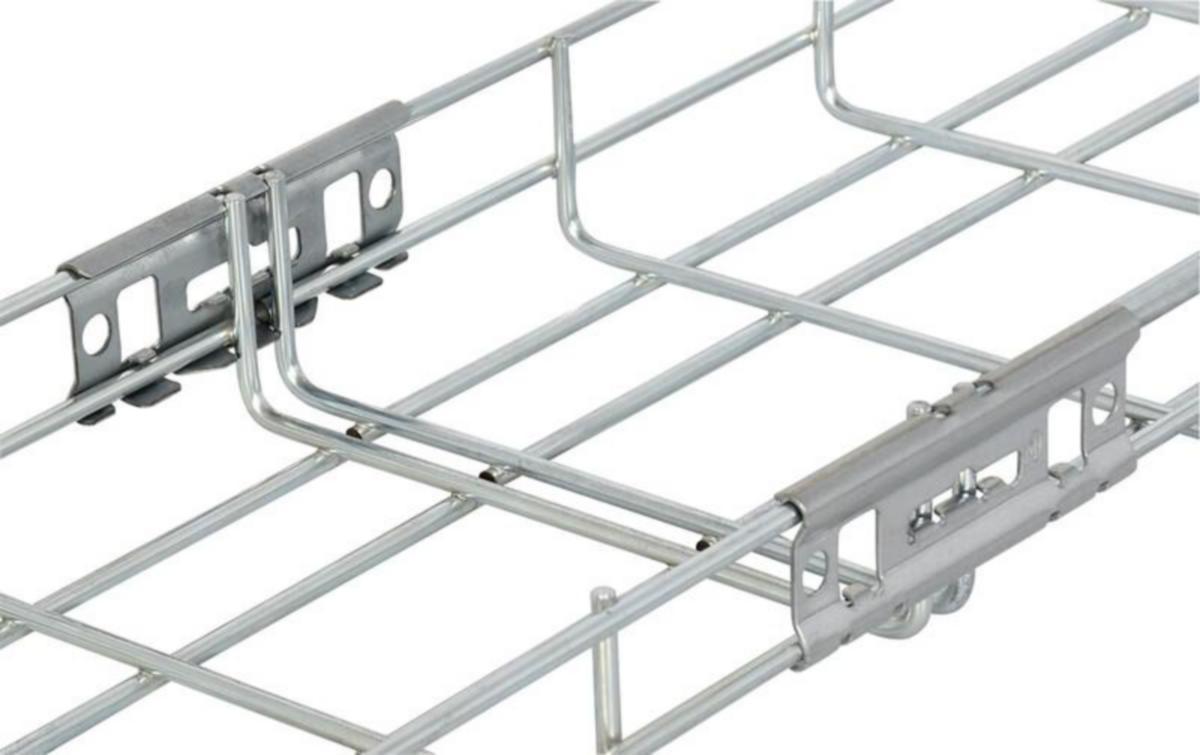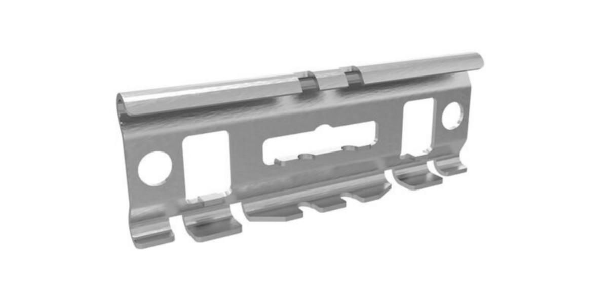 Asennus ilman lisäruuveja. Kiinnitä jatkokappaleet lankahyllyihin sekä lukitse taivuttamalla korvakkeet lankojen ympäri putkipihdeillä. Soveltuu Z4-sarjan lankahyllyille (ulkotilat ja vaativat sisätilat). Jatkokappaleen voi lukita halutessa asennusruuvisarjalla. Potentiaalintasausvaatimus toteutuu myös ilman ruuviliitosta.