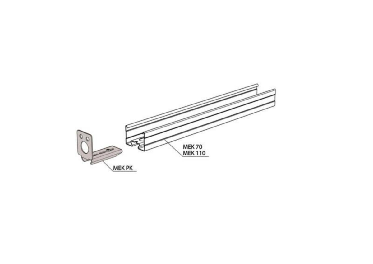 Päätykiinnikkeellä MEK PK kiinnitetään valaisinkisko AluMEK, MEK 70 S, MEK 70 K, MEK 70 ja MEK 110 seinään.