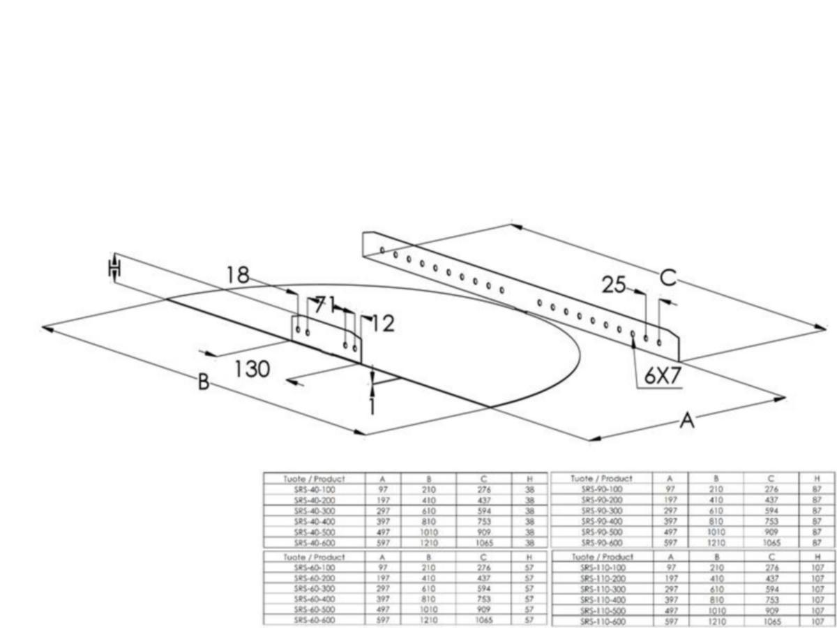 Säädettävällä kulmakappaleella SRS tehdään 0-75° vaakasuuntaiset kulmat levyhyllyille KRA ja KRB.