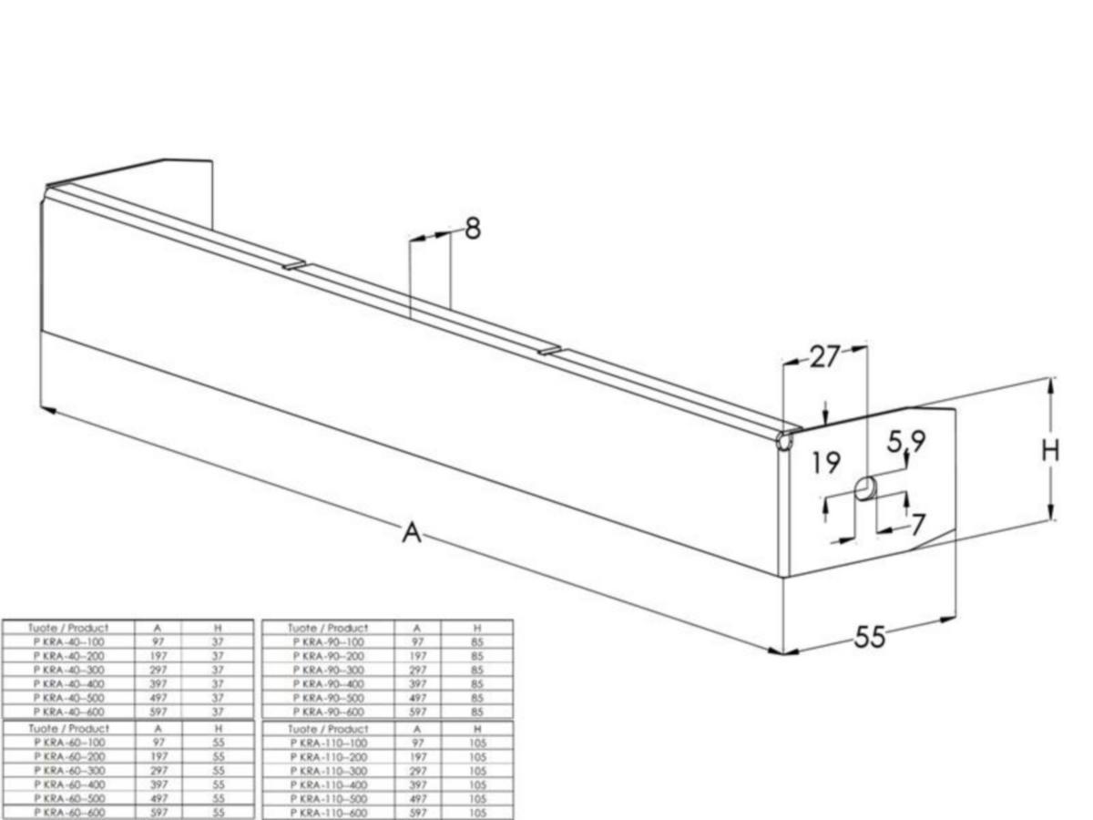 PÄÄTYKAPPALE LEVYHYLLY MEKA P-40-200 KRA PG