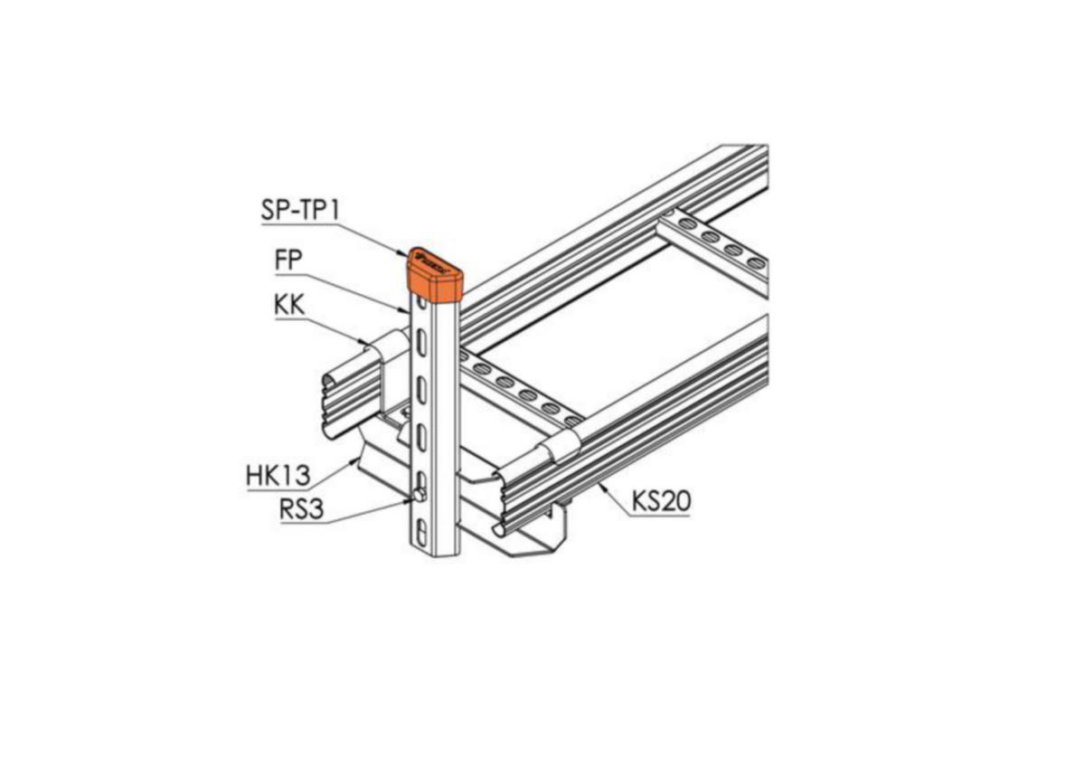 Suojatulpalla SP-TP1 suojataan päädyt asennuskiskoista FP sekä kattokannakkeista TP1.