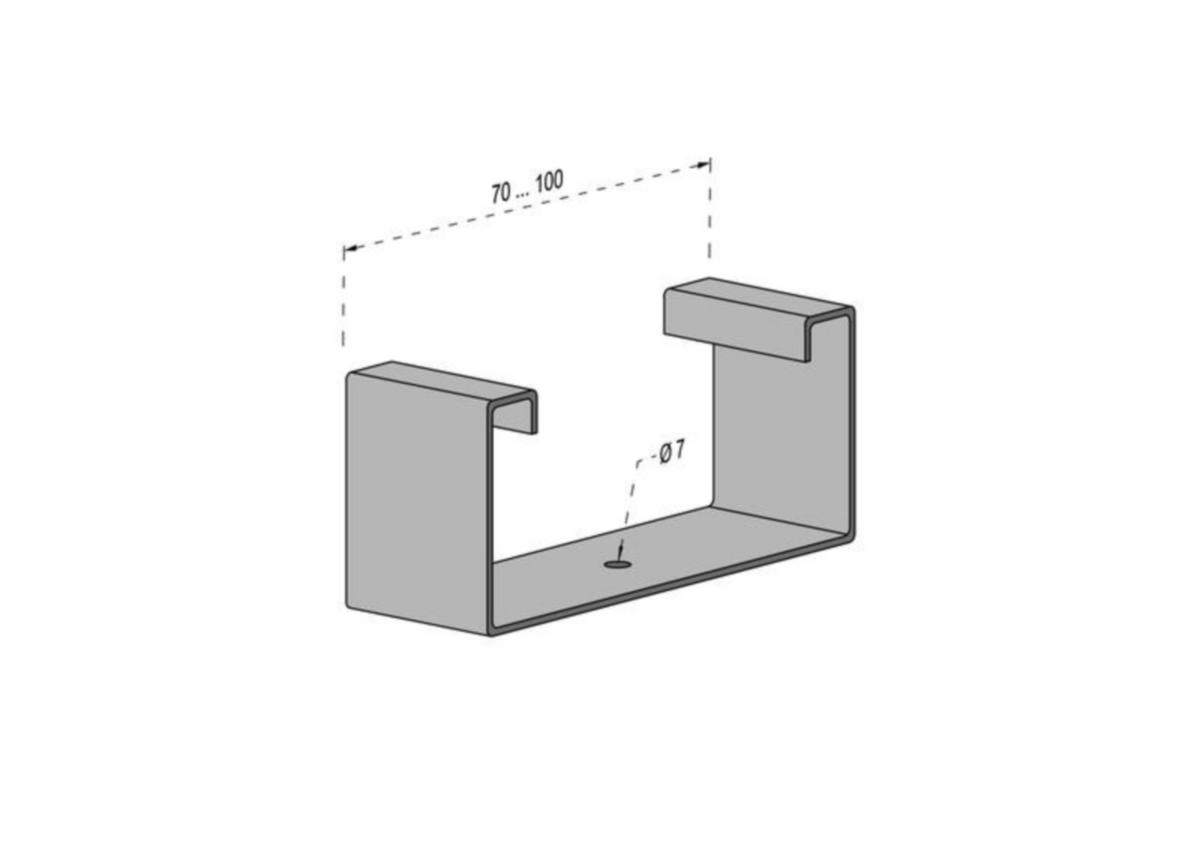VK-VP/70-100 zn/PM valaisinkiinnitintä käytetään valaisimen kiinnittämiseen valaisinkiskon alapuolelle kun valaisin halutaan valaisinkiskon keskelle. Valaisinkiinnitin lukitaan tarvittaessa valaisinkiskoon käyttäen porakärkiruuvia (esim. Por/4,2x13mm S1472459).
