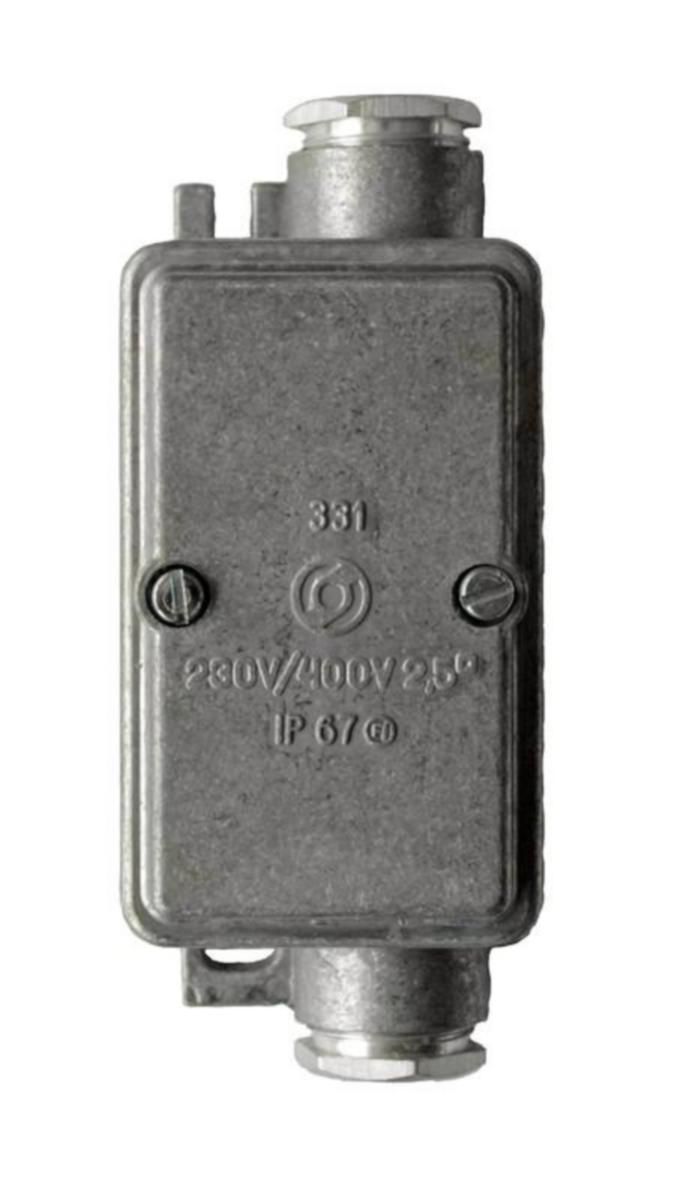 Vaihtorasia, 400V, IP 674x2,5 mm2 vaippaliittimet + maadoitusliitin. Rasioissa 1 kpl sisäpuolinen vedonpoistin. PK16 läpiv. Alumiiniset holkkitiivisteet. 54x89 mm. Saatavana myös pohjareiällä.