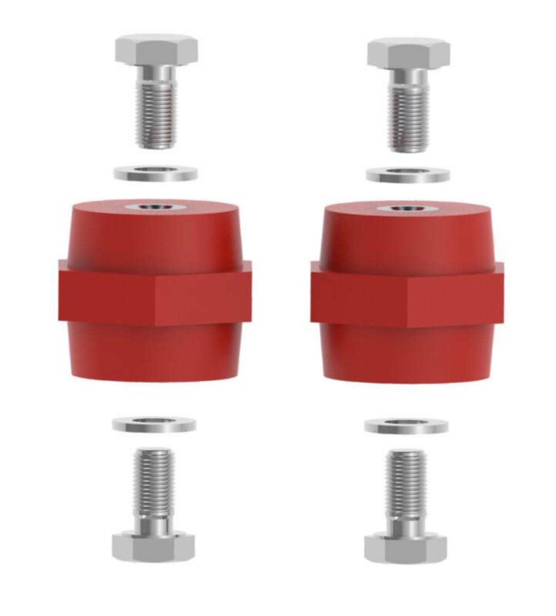 Eristimet on valmistettu lasikuituvahvisteisesta polyamidista. Kiinnitystarvikkeet ovat sinkittyä terästä. Pakkaus sisältää kaksi kappaletta 40 mm M10 tukieristimiä, neljä DIN933 M10x20 ruuvia sekä neljä DIN125 M10 aluslaattaa.