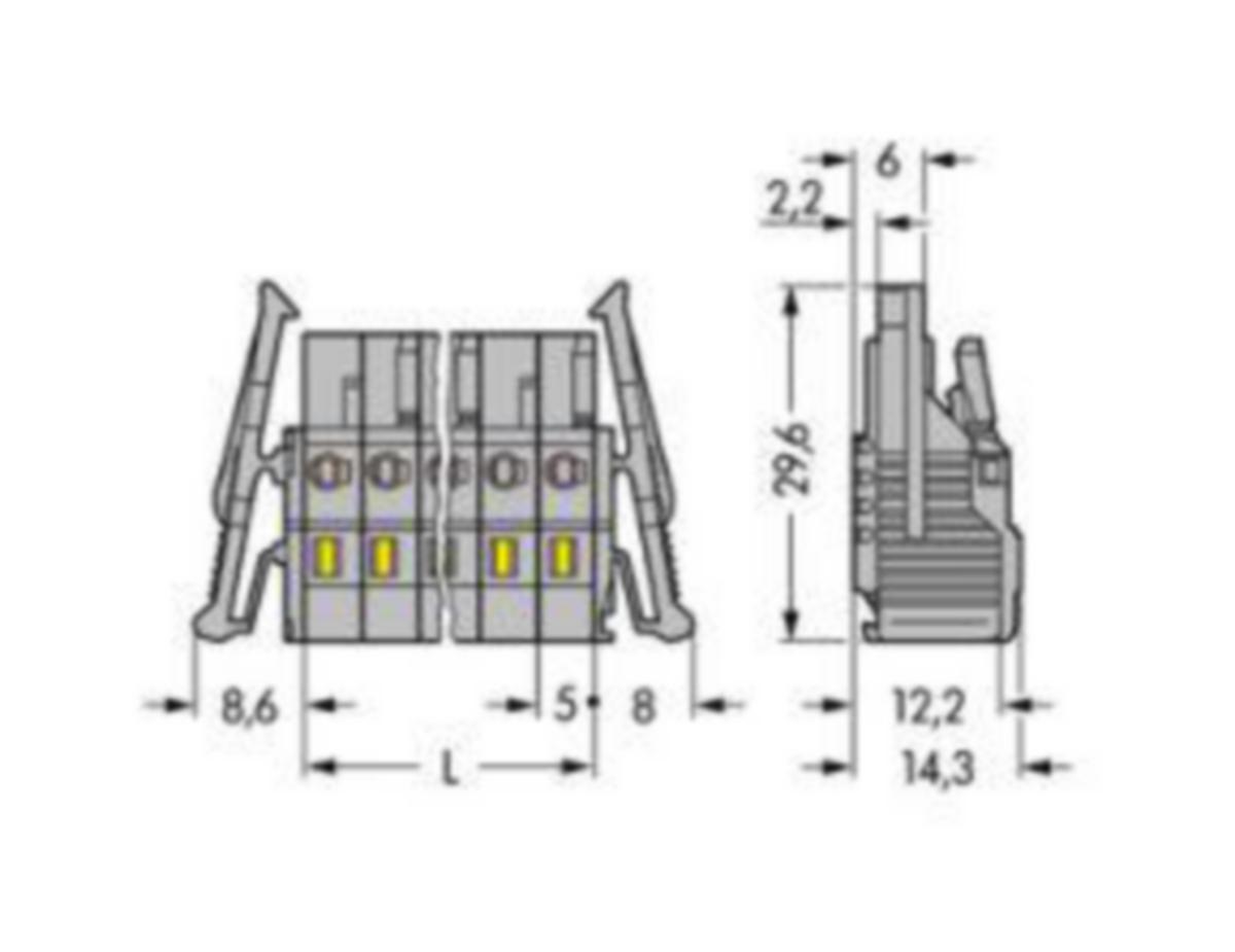 - Koskettimien moduuliväli: 5 mm