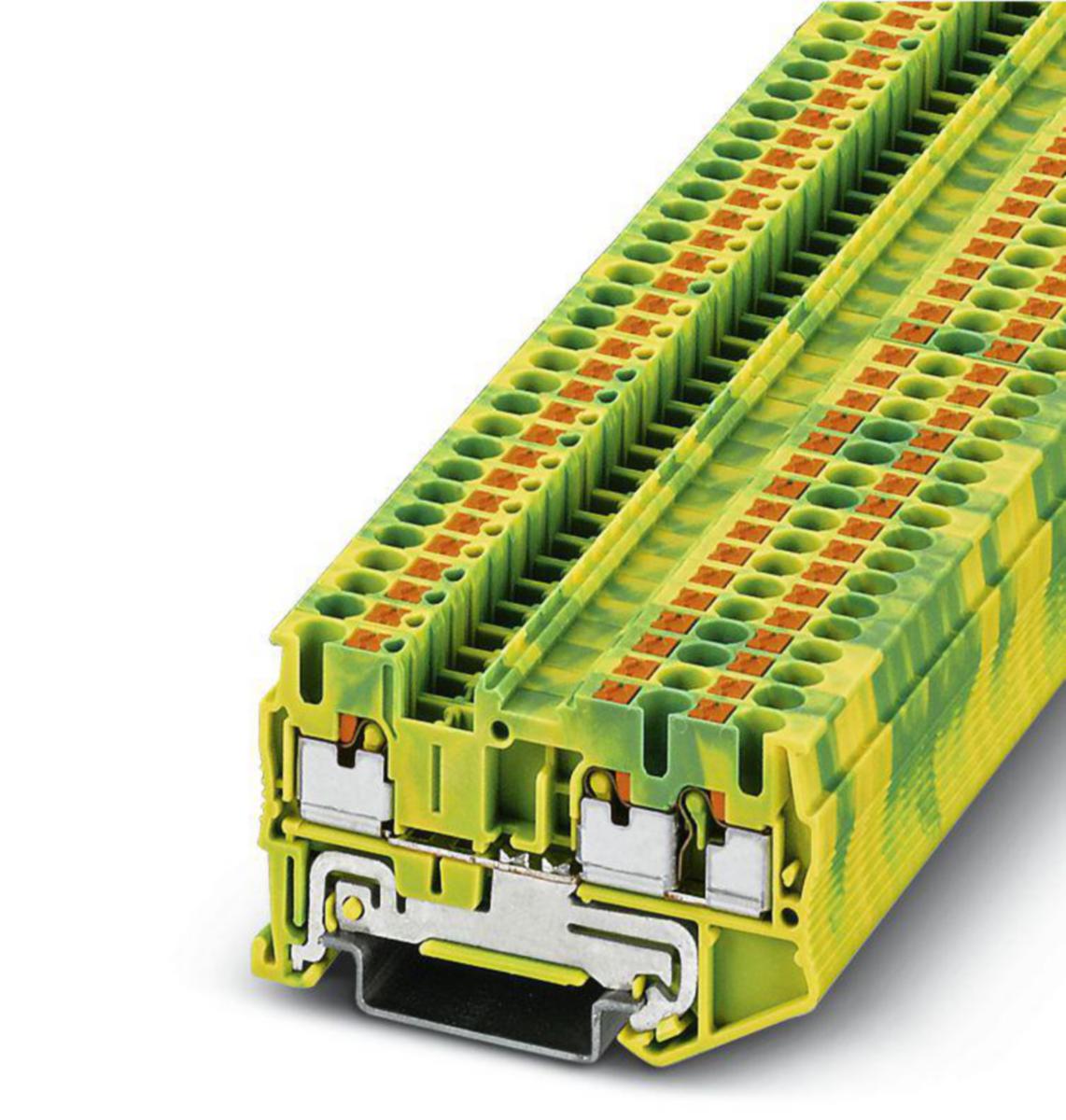 Riviliitin jousi, maadoitusliitin, suojajohdinliitinYksikerroksinen suojamaadoitusriviliitin push-in -tekniikalla, joka mahdollistaa kevyen, helpon ja nopean kytkemisen ilman työkaluja. Toisella puolella kaksoisliitäntä. Sopii 0,14 - 2,5 mm2:n monisäikeisille ja 0,14 - 4 mm2:n yksilankaisille johtimille. Maadoittuu suoraan asennuskiskoon NS 35. Väri kelta-vihreä.