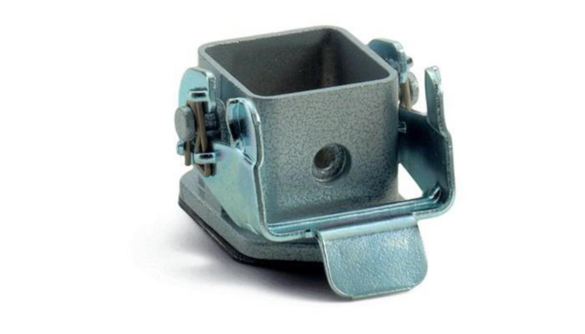 H-A 3 läpivientikoteloH-A 3 -kokoinen metallivalmisteinen liitinkotelon alaosa.Alakotelossa yksi lukitusvipu.Läpivientiasennukseen tarkoitettu alakotelo.Kotelointiluokka IP 65 liitin suljettuna.Materiaali sinkkivalu.Sopii kosketinosille H-A 3, H-A 4, H-Q 5, STA 6, H-D 7 tai H-D 8, uros tai naaras.