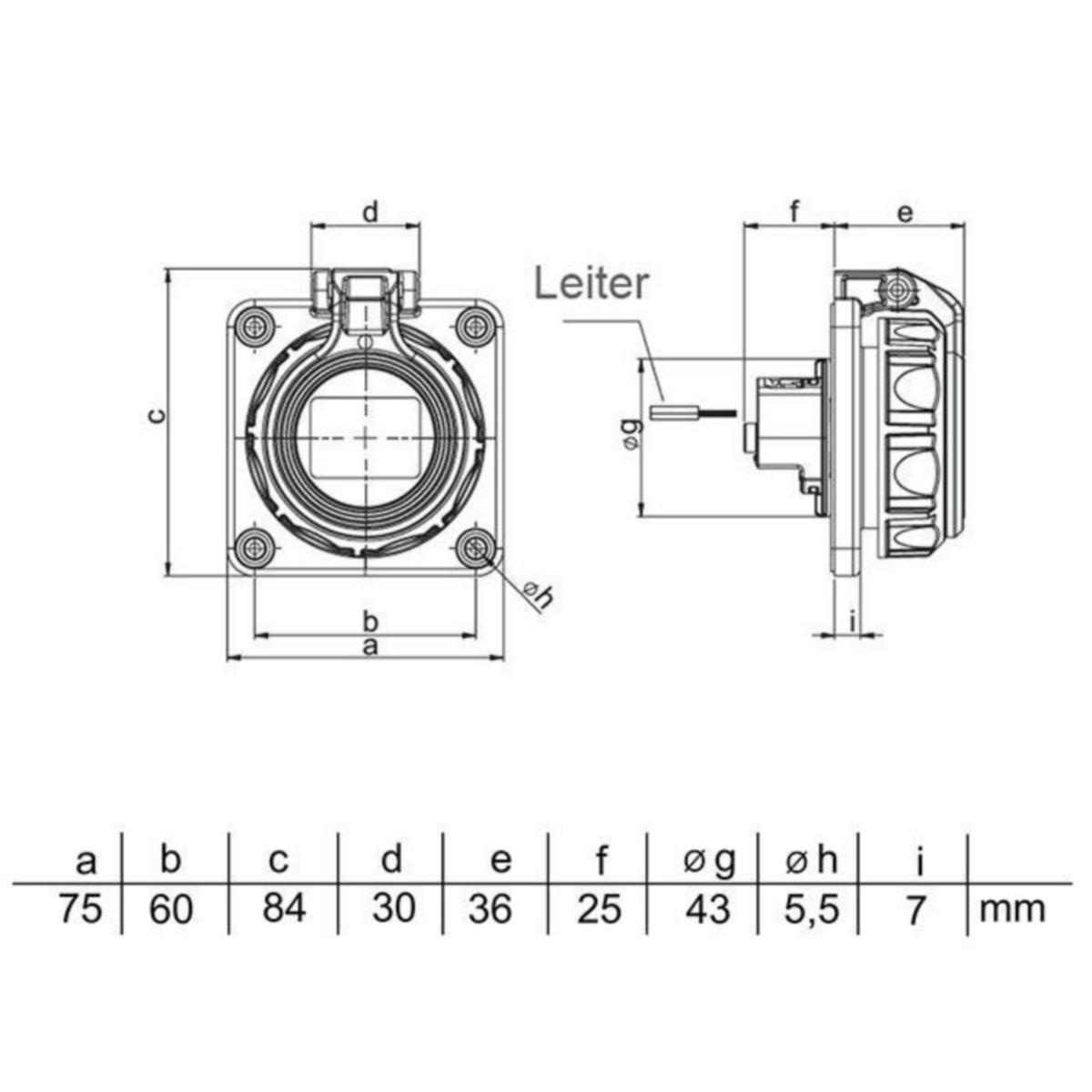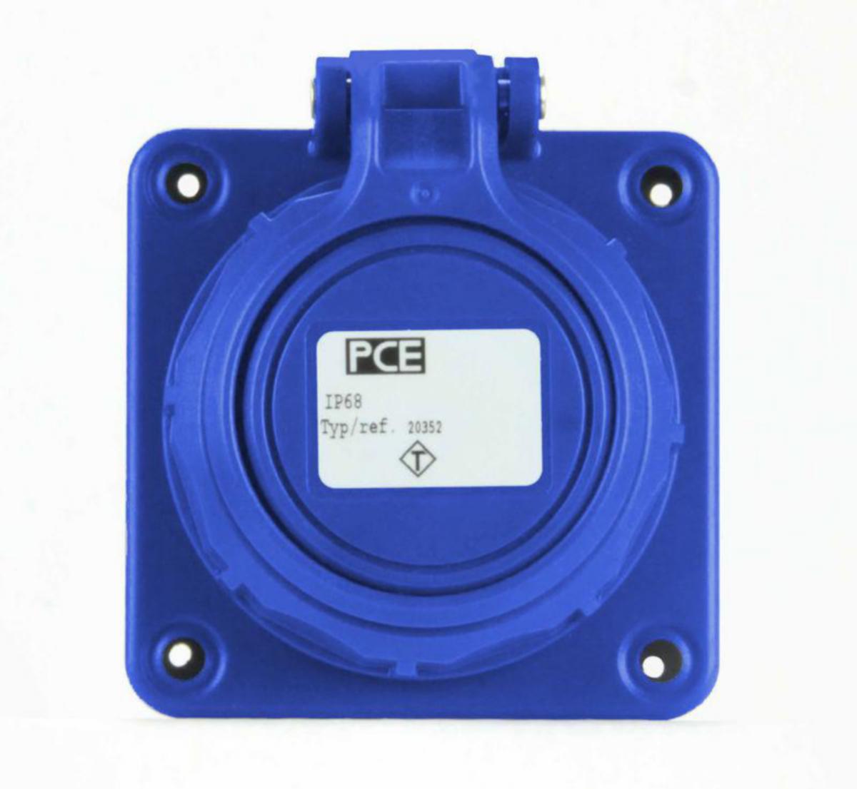 2423366: PCE 25352-BC Upotettava Schuko pistorasia 16A IP66/68 suojakannella ja lapsisuojalla75x75, sininen