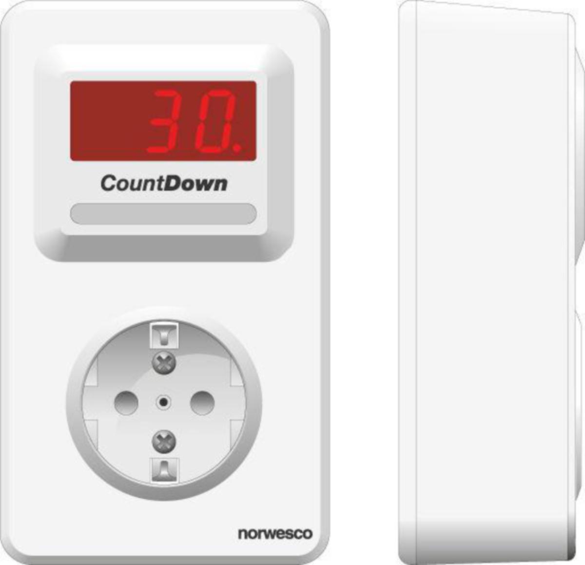 CountDown elektroninen turva-ajastin pistorasialla 16A/230V 1...999minAjastinta käytetään paloriskin minimoimiseen teollisuudessa, julkisissa tiloissa sekä kodeissa. Ajastimella voidaan ohjata pistorasiaa johon on kytketty kahvinkeitin, silitysrauta tai muu samankaltainen sähkölaite. Ajastin kytkee jännitteen pois säädetyn ajan loppuessa.CountDown on elektroninen turva-ajastin maadoitetulla pistorasialla johon voidaan asettaa sekä kiinteitä että väliaikaisia aikoja. Kiinteät aikavaihtoehdot ovat 5, 10, 15, 20, 30, 60, 90, 120, 240 ja 480 min. Kiinteä aika asetetaan asennettaessa ajastin sähköurakoitsija toimesta. Toimitettaessa ajastimeen on asetettu 30 min kiinteä aika.Käyttäjä voi ajastimen painiketta käyttäen asettaa väliaikaisen ajan minuutin tarkkuudella jonkin ajan 1...999 minuutin välillä. Ajastimeen voidaan sähköurakoitsijan toimesta lukita yksi kiinteä aika jolloin väliaikaisen ajan asettaminen ei ole mahdollista.Ajastimessa on 1 sulkeutuva 2-napainen kosketin. Kosketin 16A/250V. Ajastin ohjaa pistorasiaa. Kytkentäliittimet sijaitsevat kotelon keskiosassa. Kaapeliläpiviennit sekä kotelon ylä- että alaosassa. Kotelointiluokka on IP20. Kotelo on valmistettu iskunkestävästä muovista. Väri valkoinen. Kotelon koko (lxkxs) 138x80x45 mm.