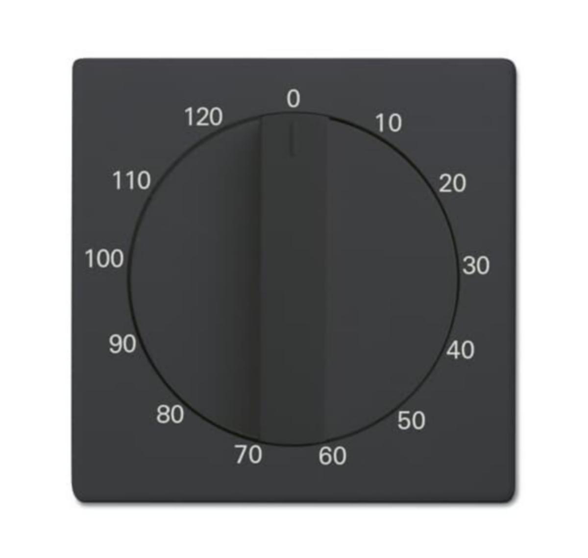Mekaanisen ajastimen keskiölevy + säätönuppi. Ajastus merkinnät 0-120 min