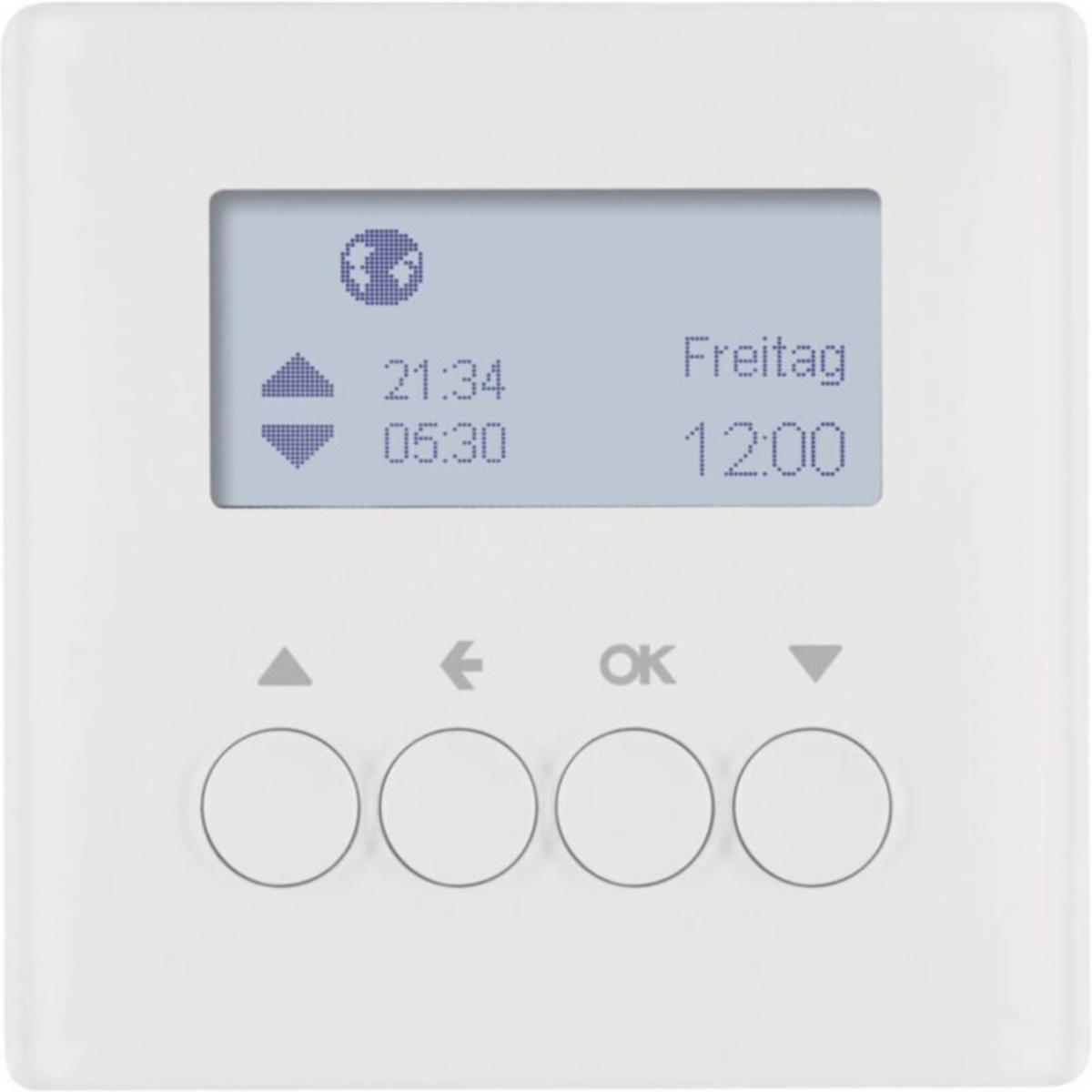 Verhokellokytkinkeskiö digitaalisella näytöllä moottoroitujen rulla- ja säleverhokojeiden ajastetuun ohjaukseen.