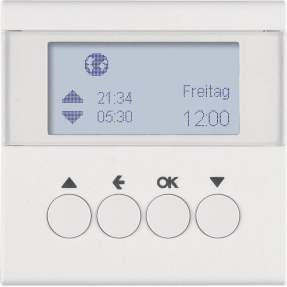 Verhokellokytkinkeskiö digitaalisella näytöllä moottoroitujen rulla- ja säleverhokojeiden ajastetuun ohjaukseen.