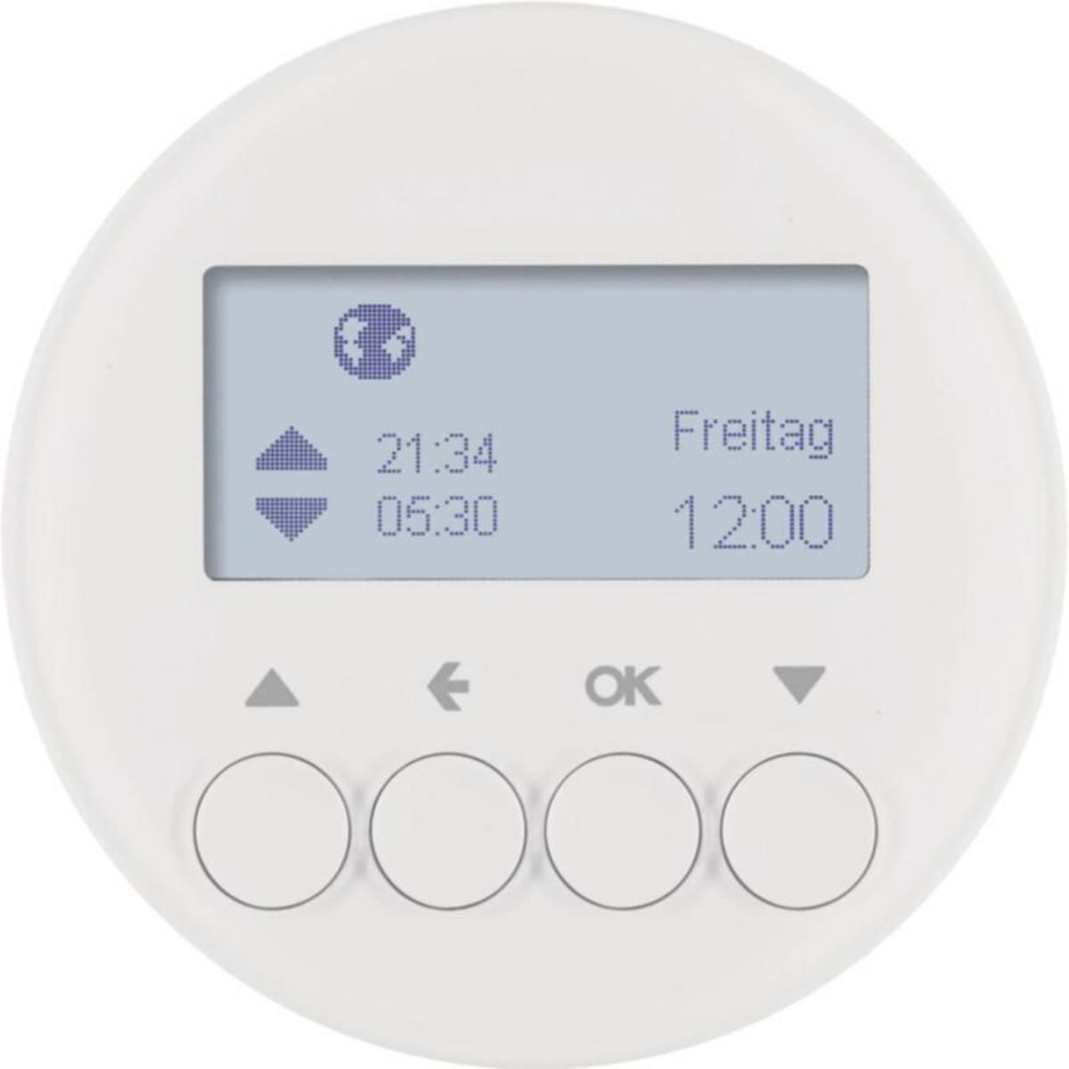 Verhokellokytkinkeskiö digitaalisella näytöllä moottoroitujen rulla- ja säleverhokojeiden ajastetuun ohjaukseen.