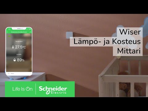 Wiser on älykotijärjestelmä, joka lisää kodin mukavuutta, turvallisuutta ja energiatehokkuutta. Wiser-älykoti koostuu erilaisista laitteista, joita voidaan ohjata langattomasti eri tavoin. Wiser puhelinsovelluksella voidaan tehdä käteviä tilanneohjauksia, ajastuksia tai esimerkiksi säätilan vaihteluihin perustuvia automaatioita. Laitteet keskustelevat myös keskenään, joten kodin toimintoja voidaan automatisoida tapahtumaan ilman käyttäjän huomiota. Wiser voidaan asentaa normaaliin kaapelointiin tai langattomasti.Huomaamaton paristokäyttöinen lämpötila/kosteusanturi voidaan kiinnittää sopivaan paikkaan ruuveilla/teipillä mukana tulevan asennuslevyn avulla. Anturi lähettää lämpötila/kosteustiedot matkapuhelimen Wiser-sovellukseen ja niitä voidaan käyttää automaatioiden luomiseen, hälytyksiin esimerkiksi lämpötilan laskiessa tai noustessa sekä seurantaan päivä/viikko/kuukausi/vuositasolla.Pariston kesto n. 5v käytöstä riippuen. Paristo (CR2450) on käyttäjän vaihdettavissa.Schneider Electricin Wiser-järjestelmän täydellinen käyttö vaatii keskusyksikön (snro 2622118, CCT501901, Matter-sertifioitu), Wiser by SE-älypuhelinsovelluksen, käyttäjätilin sekä internet-yhteyden. Järjestelmän käyttö on maksutonta.Certified by Cozify: Voidaan yhdistää ja käyttää Cozify-älykotijärjestelmässä.Voidaan käyttää myös muissa älykotijärjestelmissä niiden tukemien toimintojen mukaisesti mm. Homey, Home Assistant. HUOM: Käyttäminen näissä järjestelmissä vaatii erilliset sovellukset ja niiden käyttämisessä sovelletaan järjestelmän valmistajan erillisiä käyttöehtoja. Järjestelmän tuesta vastaa järjestelmän valmistaja.IP20, käyttölämpötila -10-50C. Laite on tarkoitettu yksityiseen koti- ja sisäkäyttöön.Laite on mahdollista yhdistää Nordpoolin pörssisähködataan yhteensopivan PowerTagin kautta