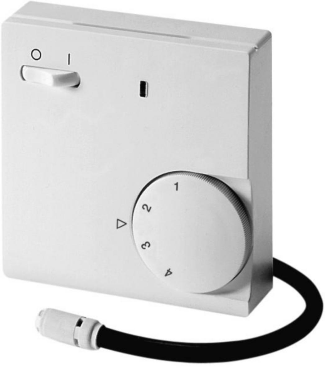 Hystereesi ~ 1 K, suojausluokka IP 30, lattian lämpötilan havaitsemiseen, mukana kauko-anturi 4 m anturikaapelilla, säätönupin alueen kaventaminen, asteikko 1.. .4 (=10...40C), 1 EI koskettimia, On/Off, lampun lämpö. Kuormituskatkos standardin EN 50559 mukaan