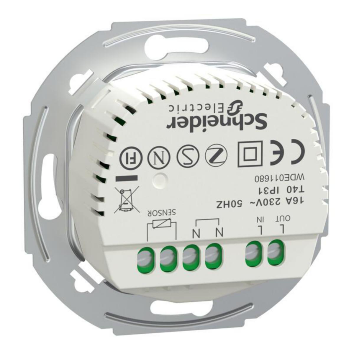 Wiser on älykotijärjestelmä, joka lisää kodin mukavuutta, turvallisuutta ja energiatehokkuutta edullisesti ja helposti.Wiser-älykoti koostuu erilaisista laitteista, joita voidaan ohjata langattomasti eri tavoin. Wiser puhelinsovelluksella voidaan tehdä käteviä tilanneohjauksia, ajastuksia tai esimerkiksi säätilan vaihteluihin perustuvia automaatioita. Laitteet keskustelevat myös keskenään, joten kodin toimintoja voidaan automatisoida tapahtumaan ilman käyttäjän huomiota. Wiser-yhdistelmätermostaatti yhdistää älykodin lämmityksen muuhun älykotijärjestelmään. Termostaatti soveltuu sähköisen ja vesikiertoisen lämmityksen tilanne- sekä automaatio-ohjaukseen Wiser by SE-sovelluksen kautta. Toiminnot: Suora käyttö laitteesta (ei vaadi sovellusta) Vain huonelämpötilan mittaus Vain lattialämpötilan mittaus Huonelämpötilan mittaus ja lattialämpötilan rajoitus Lapsilukko Lattian tyypin valinta Minimi/maksimilämpötilan asetus Ajastus/tilanneohjaus/automaatiot Avoimen ikkunan tunnistus Boost-toiminto nopeaan lämmitykseen/viilennykseen Käyttöjännite: AC 230V 50Hz Kuormitettavuus: Max 16A Virrankulutus valmiustilassa: Max 0.4W Vaatii nollajohdon Lämpötilan säädön tarkkuus: +/- 0.5°C (4...30°C välillä) Lämpötilan mittausväli: 0.1°C (näyttö 0.5°C tarkkuudella) Pistematriisinäyttö (kirkkaus säädettävissä sekä piilotettavissa) Tuetut lattiasensorit: 10, 12, 15, 33, 47 (kOhm nimellisarvolla 25°C) Suojaluokka II Ylijännitesuojausluokka III Impulssijännite 4kV Käyttölämpötila 0...40°C Huonekosteus max 90% ei kondensoituva Vastusarvon asetus ja kulutuksen seuranta Kapasitiiviset hipaisupainikkeet Suojausluokka IP31 Sertifioitu Zigbee 3.0 tuote. Lattia-anturi ei sisälly pakkaukseen kts snro 2622500 Schneider Electricin Wiser-järjestelmän täydellinen käyttö vaatii keskusyksikön (CCT501901, Matter-sertifioitu), Wiser by SE-älypuhelinsovelluksen, käyttäjätilin sekä internet-yhteyden. Järjestelmän käyttö on maksutonta.Laite on tarkoitettu sisäkäyttöön.Laite on mahdollista yhdistää Nordpoolin pörssisähködataan yhteensopivan PowerTagin kautta.Voidaan käyttää myös muissa älykotijärjestelmissä niiden tukemien toimintojen mukaisesti mm. Homey, Home Assistant