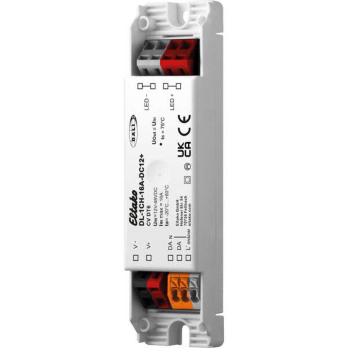 1-kanavainen DALI-2 LED himmennin välikatto- tai pinta-asennukseen. 120 x 30 x 22 mm. Suojausluokka IP20. Valmiustilan kulutus vain 0,12 wattia.DALI-2 sertifioitu. DALI-2 on DALI-standardin uusin sukupolvi, jossa on laajempi valikoima erilaisia toimintoja. DALI-2-laitteet sisältävät myös kaikki aiemmat DALI-toiminnot ja ovat siksi yhteensopivia myös vanhempien laitteiden kanssa. Suunniteltu ohjaamaan vakiojännitteisiä LED-moduuleja (CV) käyttöjännitteillä 12V - 48V, Sw&Dim tai SwitchDim2: 1 tai 2 painonappitulon käyttö mahdollistaa kirkkauden hallinnan ilman DALI:a; vaihtoehtoisesti käytävätoiminto suoraa aktivointia varten liiketunnistimella. Himmennysalue 0,1% - 100%. Kytkettävä PWM-taajuus (122Hz / 244Hz / 488Hz / 976Hz). Syöttöjännite 12V - 48V DC. Maks. liitetty virta 16A. Korkea hyötysuhde. Konfigurointi DALI Cockpit PC -ohjelmiston ja DALI USB -liitännän kautta.