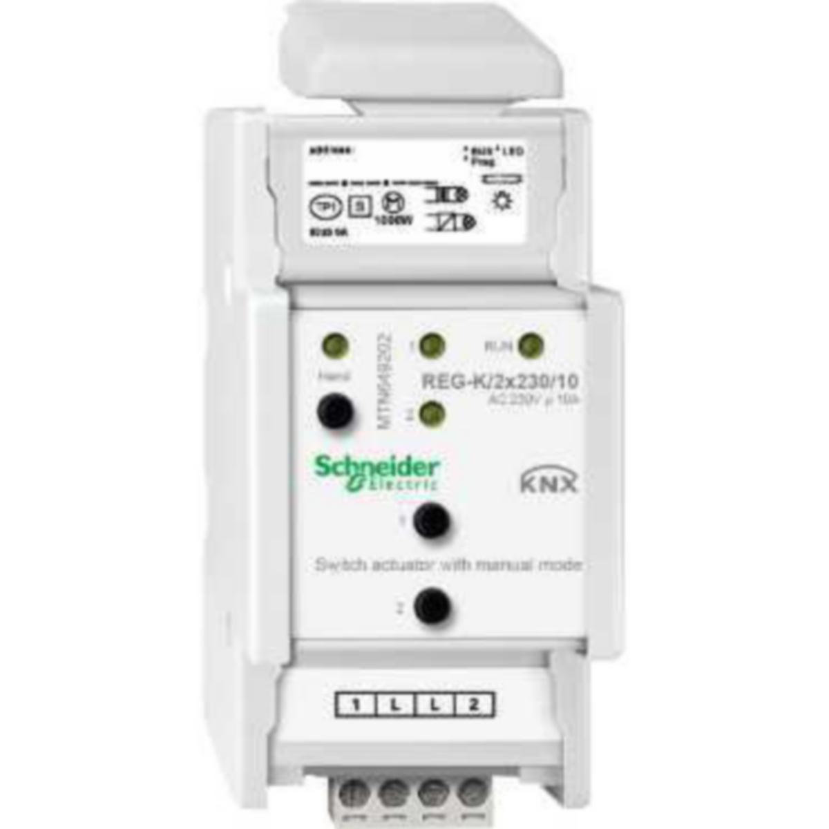 2-kanavainen kytkintoimilaite käsiohjauksella. Kanavakohtaiset keltaiset LED-statusmerkkivalot sekä toimilaitekohtainen vihreä LED-merkkivalo. Releen toiminta valittavissa sulkeutuva / avautuva; kytkentä- ja katkaisuviiveet; porrasvaloajastin, mahdollisuus ajastimen keskeyttämiseen OFF-sanomalla valittavissa parametrilla; porrasvaloajastimen varoitussignaali; lukitus sekä logiikkaportti tai prioriteetti; tilanteet; kanavakohtainen statuspalaute; keskitetty ohjaus; toiminta väyläjännitteen poistuessa ja palautuessa.