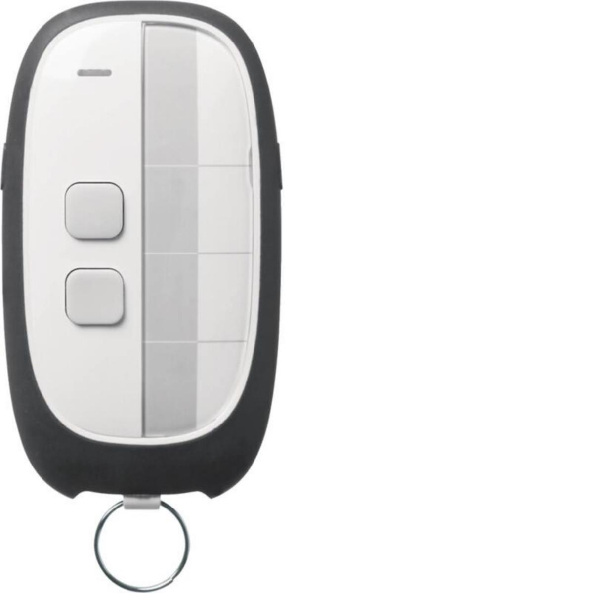 2-painikkeinen 2-kanavainen KNX-radiokaukosäädin. Kaukosäädin toimii painikeopetettavissa quicklink-radioasennuksissa langattomien lähtöyksiköiden ohjaukseen tai mediakytkimen TR131A kautta kaapeloidun KNX-väyläjärjestelmän lähtöjen ohjaukseen yksisuuntaisiin ohjauskäskyin. Käytettävissä olevat toiminnot ovat: kytkentä, himmennys, verho-ohjaus, toimintatilan valinta lämmitystoiminnoille, ajastus ja tilanteiden kutsu. Kaukosäätimessä on lukitustoiminto vahingossa tapahtuvien painikkeiden painalluksista johtuvien toimintojen estämiseksi. Monivärinen LED ilmaisee lähetyksen, asettelun ja pariston tilan. Yksittäiset näppäimet voidaan merkitä ja kaukosäädintä voidaan käyttää avainnippuun integroituna integroidun kiinnitysrenkaan ansiosta.