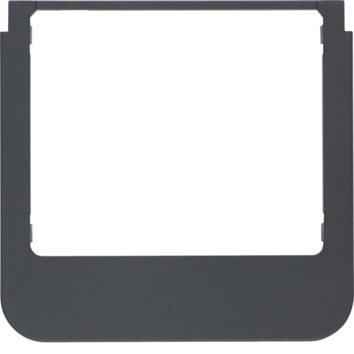 Peitelevy KNX Touch Control -kosketusnäytölle, mitat (L x K) 93,9 x 90,9 mm, peiteosan korkeus asennuspinnasta 4 mm. Voidaan käyttää myös audio-oviasemien integrointiin käyttöön valitun näytön muotokielen ja kehysvärin sovittamiseksi käyttöön valitun Berker-asennuskalustesarjan kanssa.