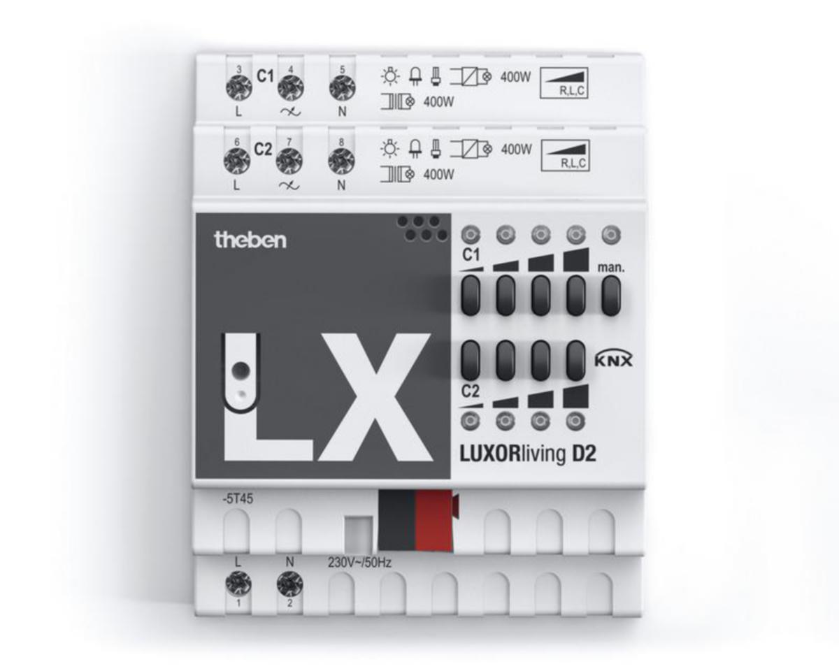 LUXORLiving himmennintoimilaite 2-kanavainen, himmenninlähtö 400w per kanava, himmennysalue 0-100% himmennettävät LED-lamput, hehkulamput, halogeenilamput, energiansäästölamput sekä himmennettävät energiansäästölamput, LED indikointi joka kanavalle, Manuaalinen käyttö toimilaitteelta.