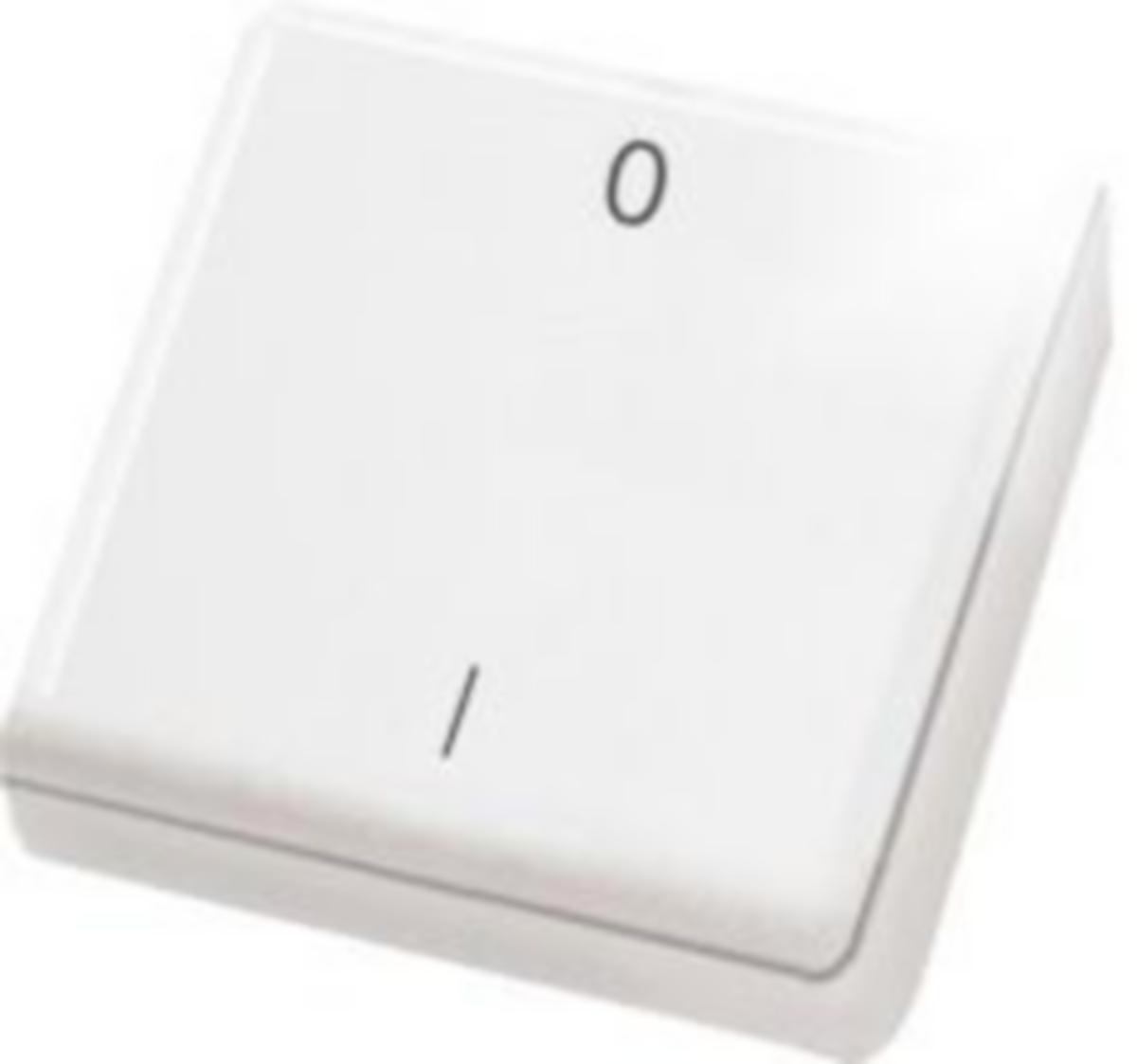 Langaton ja paristoton 2-painikkeinen minikaukosäädin jossa 0 ja I laserkaiverrukset.