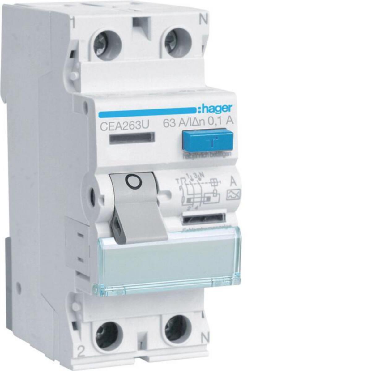 Vikavirtasuojakatkaisija (RCD) standardien EN 61008-1, DIN EN 61008-2-1 ja VDE 0664 osa 10 + 11 mukaan, kosketussuojaus IP2x normin DIN VDE 0106 osa 100 mukaisesti. Soveltuu myös jälkiasennettavien ryhmien suojaukseen (kiinnitys ilma työkaluja). Kytkentäliittimet varustettua johdinsivusuojalla. Kaksoisliitin kaapeli- ja virtakiskoliitokselle alapuolella, erillinen sininen testipainike vikavirtapiirin testaukseen . Moduuli on varustettu saranakantisella merkintäliuskataskulla ryhmämerkintöjä varten.