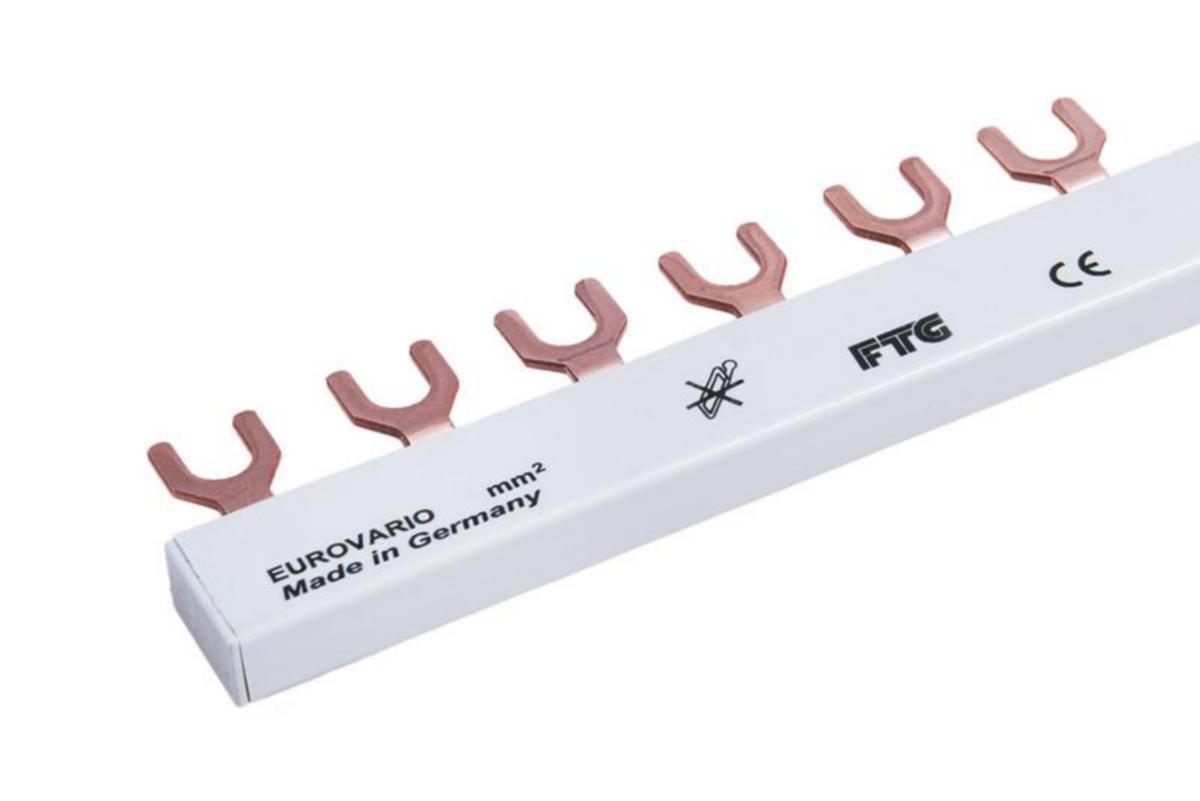 FTG Eurovario -virtakisko on tehokkain ja aikaa säästävin asennustapa. Ei sahaamista, puhdistamista tai edes päätykappaleiden kiinnittämistä: Kisko on sellaisenaan heti käyttövalmis! Kapean muotoilunsa ansiosta se vie myös vähemmän tilaa. Eurovario-virtakiskot ovat valmiiksi moduulimitoissa, mutta tarvittaessa niitä on mahdollista pidentää päällekkäisen asennusmahdollisuuden ansiosta. Päällekkäin asentaminen mahdollistaa myös tuplapoikkileikkausen jopa koko virtakiskon matkalle. Esimerkiksi uudella vahvemmalla 25mm2 muotoilulla on mahdollista saavuttaa jopa 50mm2 poikkipinta! Laajasta varastovalikoimastamme 1-, 2- ja 3-vaihekiskot 2-30 moduulimitoissa, 10, 16 ja 25 mm2 poikkipinnoin, haarukka- ja piikkimalleissa. Piikkimallista saatavilla normaalin piikkijaon (17,8 mm) lisäksi myös ABB-yhteensopiva piikkijako (17,6 mm).