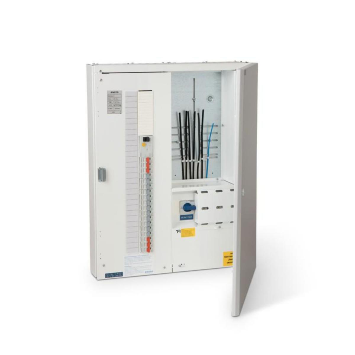 2-tariffimittauskeskus pinta- ja uppoasennukseen. Sis. oven.3-vaiheinen, ovellinen mittauskeskus, jossa 18kpl johdonsuojakatkaisijoita ja yksi 4-napainen 30mA vikavirtasuojakytkin. Keskuksessa on yksi M2-mittariristikko, mittaritilan syvyys 120 mm. Keskuksen mukana toimitetaan kiinnitystarvikepakkaus ESL3.02 uppoasennusta varten.