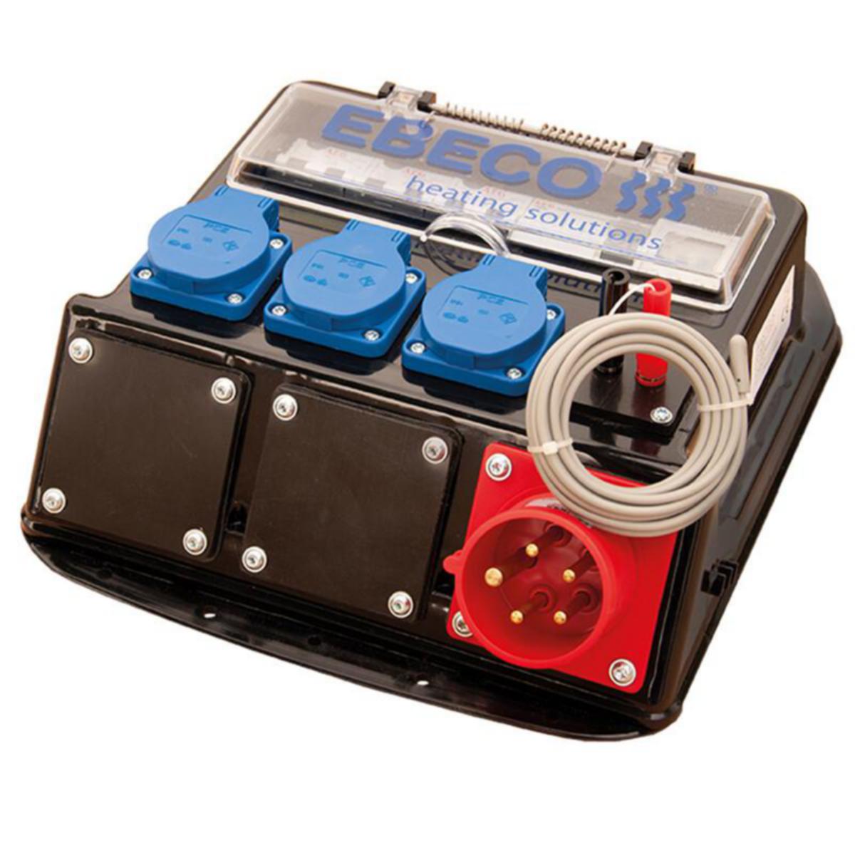 Keskus on varustettu termostaattiohjauksella ja ulkoisilla antureilla optimaalista toimintaa ja toimintaa varten. Kotelo kahvoilla, kestää vaativia olosuhteita ja jousipalautteinen luukku. Soveltuu: betoninkovetuskaapeleille, käytettäväksi kaikissa kolmessa vaiheessa; kovettuminen, kuivuminen ja mahdollinen lämmitys rakennusvaiheen aikana. Frostvakt 10 tilapäisiin pakkassuojausratkaisuihin vesi- ja viemäriputkille rakennusvajoille jne. Integroitu, ohjelmoitava termostaatti EB-Therm 800. Sulake 3x16 A.