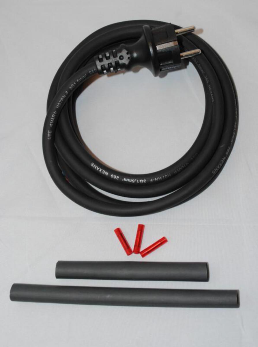 Defrost Liitossarja - 2,5m H07RN-F 3G1,5 kumikaapeli valetulla shukolla IP44 pistokeella ja 2 x kutisteputket + 3 x eristysholkit niin että pystyyt tekemään oman Defrostkaapeli kitin.