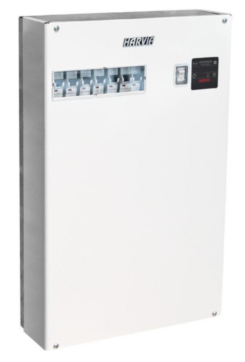 Sähkökiukaan ohjauskeskus. Teho max. 40 kW, liitäntä lisätehoyksiköille. Ominaisuudet: viikkokello, etäkäynnistys, tuulettimen ja valaistuksen ohjaus, ulkoisen laitteen ohjaus esim. sähkölukko, liitäntä turvalaitteille (ovikytkin tai kiukaan turvalaite).