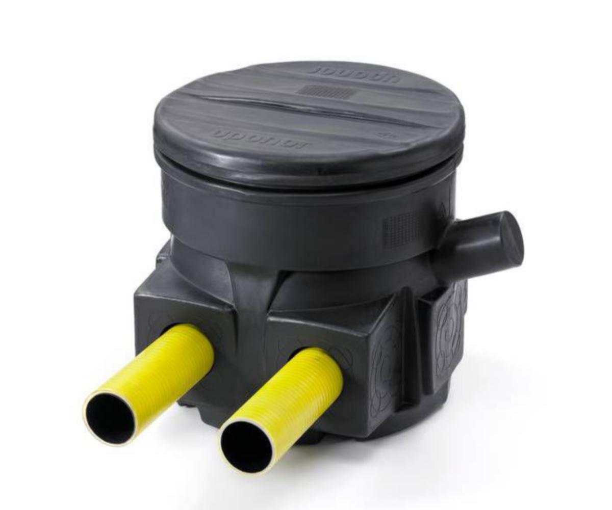 KaapelinvetokaivoKaapelinvetokaivon halkaisija on 600 mm ja korkeus 550 mm. Kaivon joka sivulla on 2-3 tasaista pintaa, joihin voidaan liittyä Ø50-160 mm putkilla. Pinnolla on porausmerkit eri putkihalkaisijoita varten. Kaapelinvetokaivo on tarkoitettu viheralueilla tehtäviin asennuksiin.Kaivossa on vetoyhde, joka helpottaa jäykkien kaapeleiden vetämistä. Vetoyhde on umpinainen, jos sitä halutaan käyttää tulee vetoyhteen pää sahata pois. Vetoyhteeseen voidaan liittyä 110 mm joustavalla kulmalla tai muhvillisella kaapelinsuojaputkella. Tästä liitoksesta on apua jäykkien kaapelien asentamisessa. Yhdettä käytettäessä taivutussäde on suurempi, jolloin asentamisessa tarvitaan vähemmän voimaa. Asentamisen jälkeen vetoyhde tai putki suljetaan tulpalla. Kaivon pohja on rei'itetty.