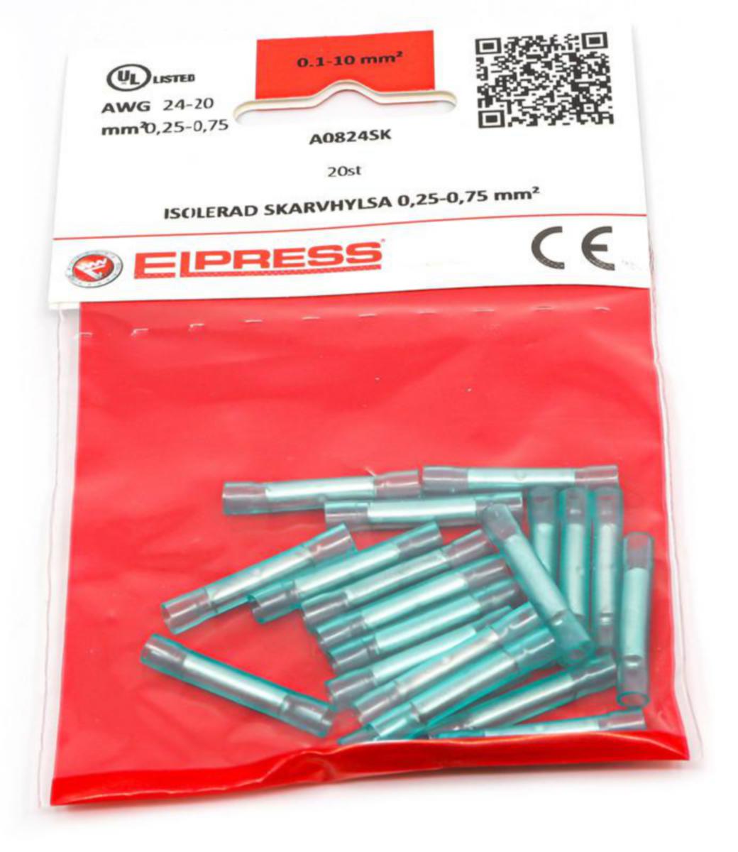 Eristetty jatkosholkki kaapelille 0,25 - 0,75 mm², kuparia, tinattu, muovi PC. Käytetään sertifioidun työkalun DSA0115 kanssa.
