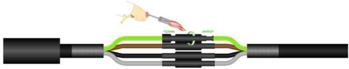 Lämpökutistejatkospakkauksella soveltuu 4-johdinkaapeleiden jatkamiseen kuten AXMK-AXMK. Pakkaus sisältää liimalliset lämpökutisteletkut; 1 kpl ulkovaippa letku, sekä 4 sisäkutisteletkua, 4 momenttiruuvilla varustettua jatkosholkkia, hiomanauhaa ja kaapelinpuhdistusliinan sekä asennusohjeen.