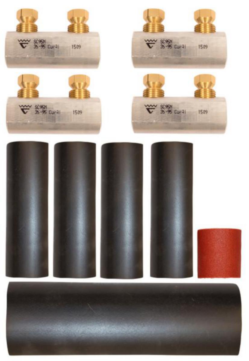 Jatkossarja muovieristeisten 3- ja 4-johtimisten kaapelien jatkamiseen, Al- tai Cu-johtimille, enintään 1 kV, Cu 50-95 mm², Al 50-95 mm².