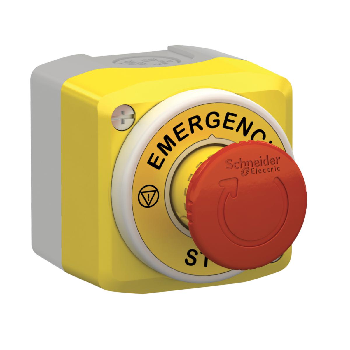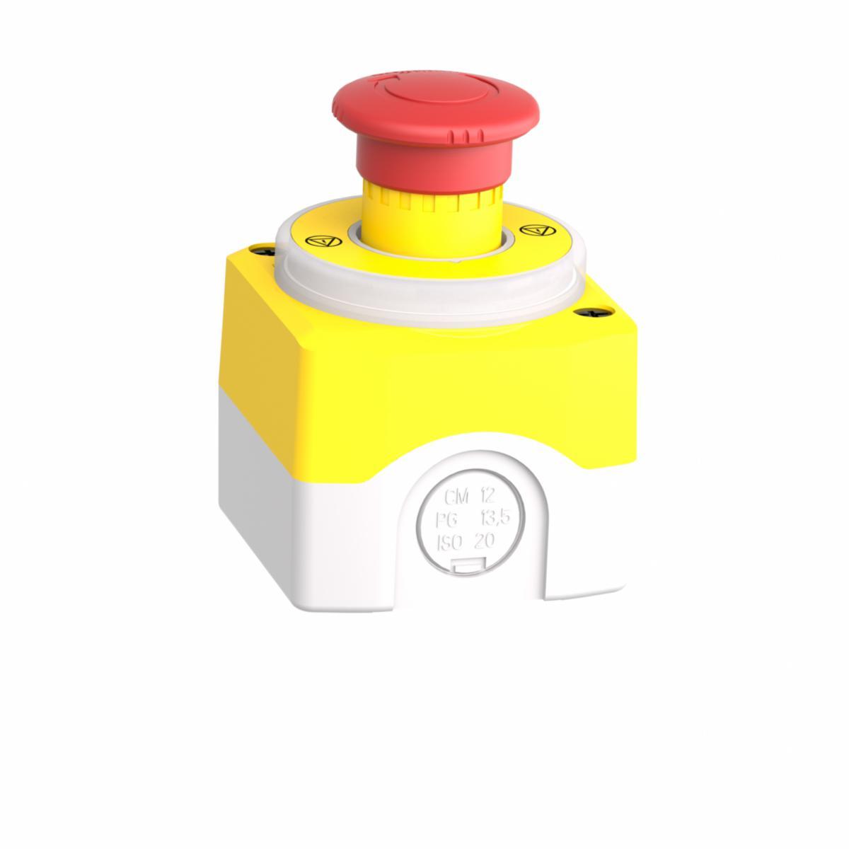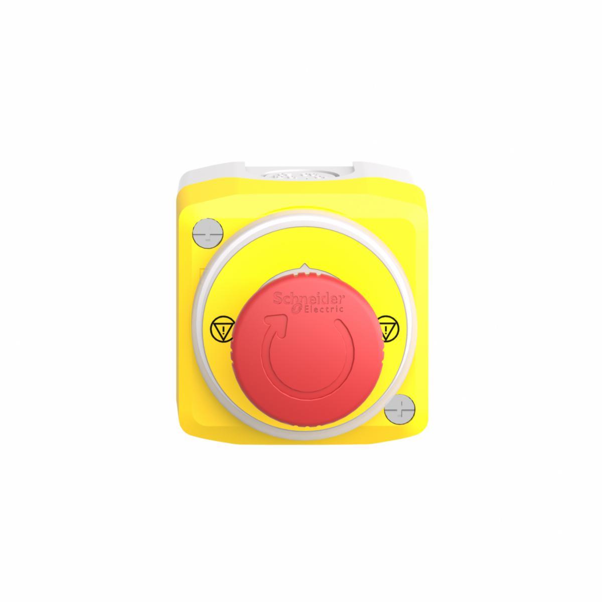 Ohjauskalustekotelo, Hätä-seis-painike, punainen Ø40, muovi, kiertovapautus, punainen/valkoinen LED, 24VACDC 1NO+2NC