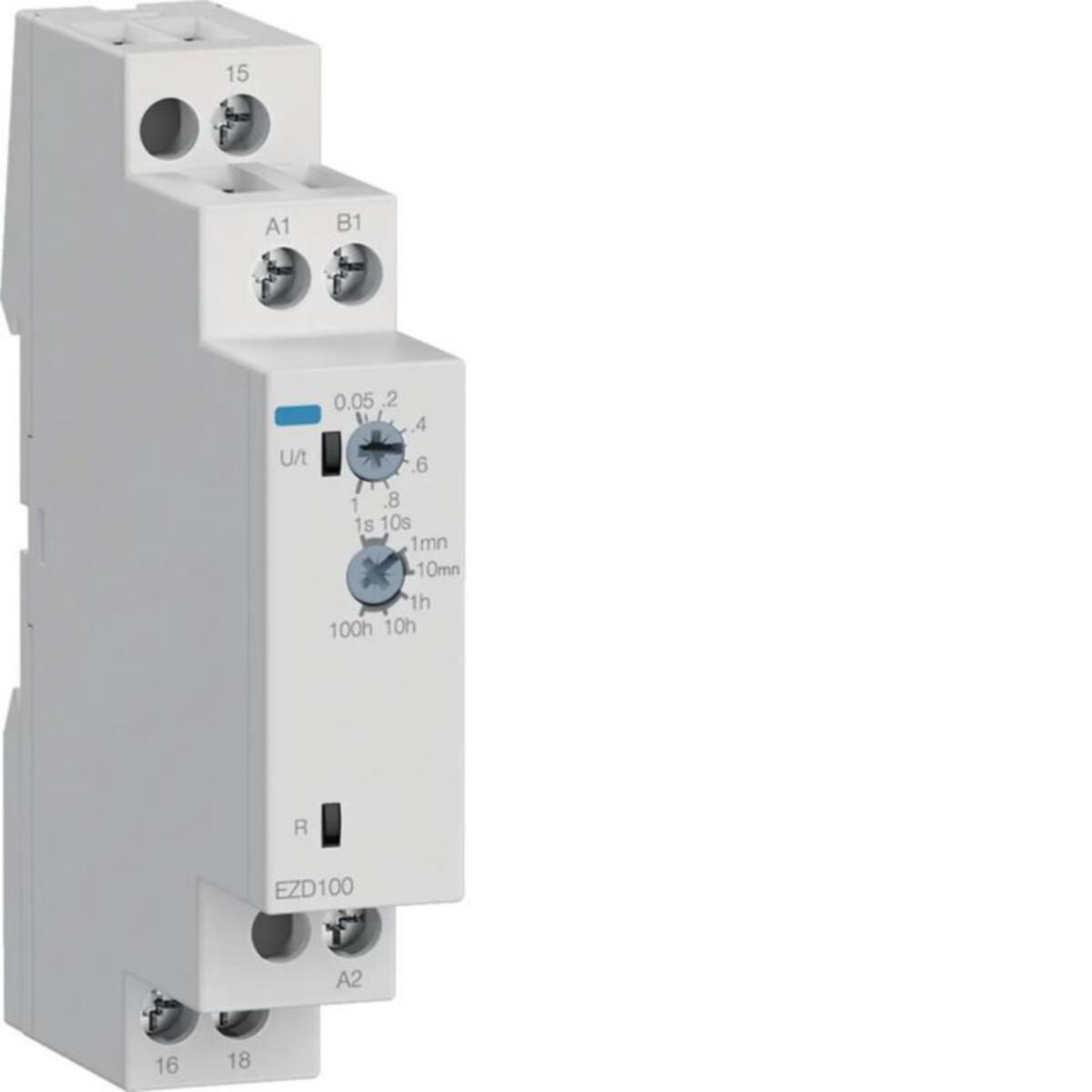 Vetohidastettu aikarele vaihtokoskettimella. Käyttötilan näyttö koskettimen tilasta kertovalla LED-merkkivalolla. Potentiometrit aika-asetteluun laitteen etupinnassa. Kosketussuojaus DIN VDE 0106/100 mukaan.