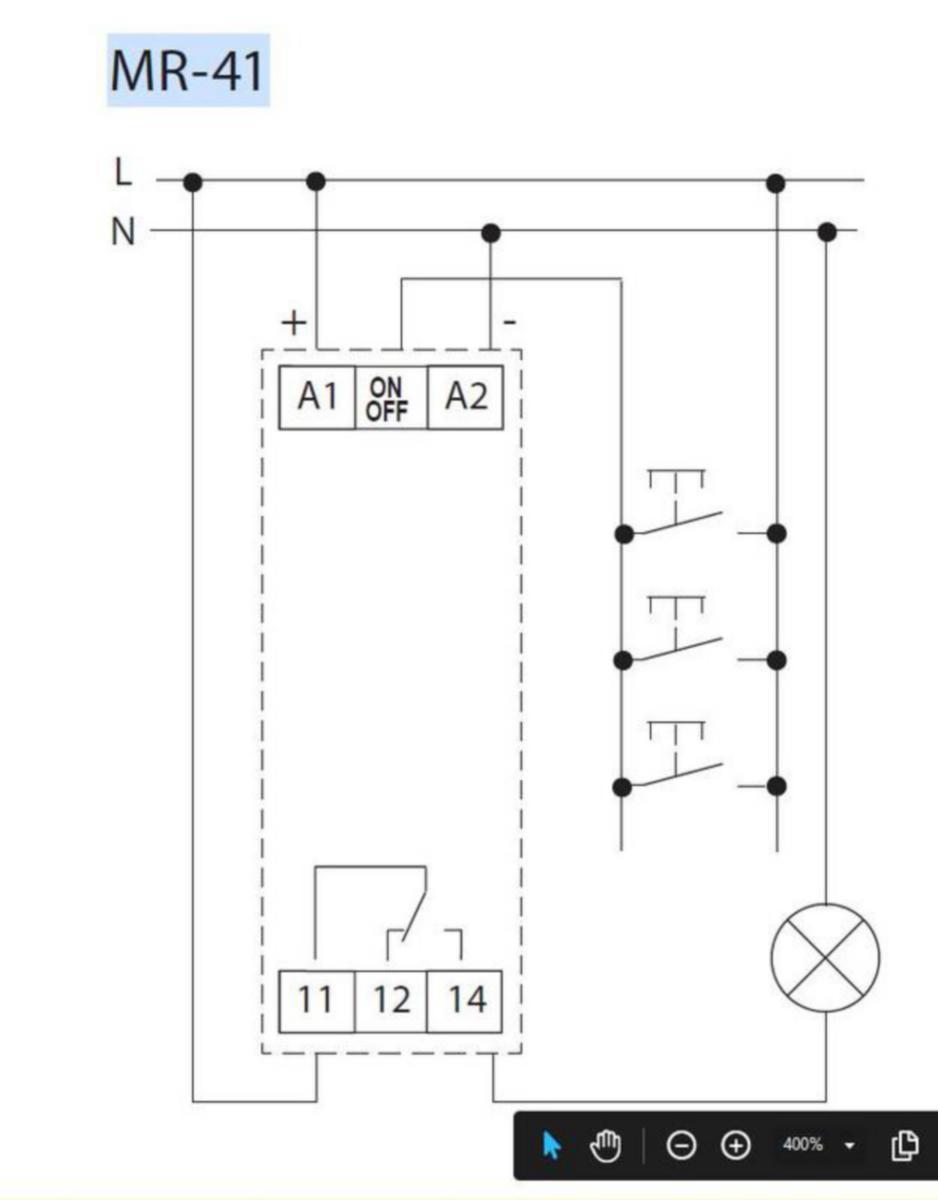 Elektroniset sysäysreleet Painikeohjatuilla sysäysreleillä voidaan korvata käytäväkytkentään tarvittavat vaihto- ja ristikytkimet valaistusohjauksessa Releet MR-41/UNI, MR-42/UNI muistavat viimeksi päällä olleen tilan syöttöjännitekatkoksen jälkeen. Katkoksen aikana rele on pois päältä ja syötön palautuessa rele kytkeytyy automaattisesti päälle.MR-41:Syöttöjännite: 12 - 240VUCLähtökosketin: 1 x vaihto 16AKatkaisukyky: 4000VA/AC1, 384 W/VDCKatkaisujännite 250VAC / 24VDCMR-42 - vaihtoehtoisesti koskettimet kytketään samanaikaisesti tai koskettimet kytkentä portaittain - toiminto valitaan valintapyörällä, F1 lähtökoskettimet toimivat samanaikaisesti ja F2 koskettimet toimivat portaittain. Lähtökosketin: 2x vaihto 16A Syöttöjännite 230VAC tai 12-240V AC/DC 1 moduulia, DIN-kiskokiinnitys