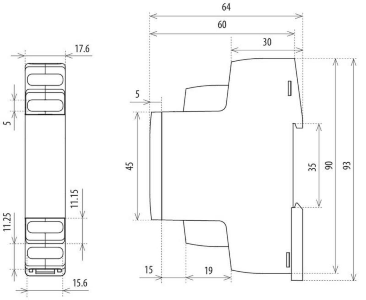 - Maksimikytkentävirta (cos phi = 0.6): 2 A