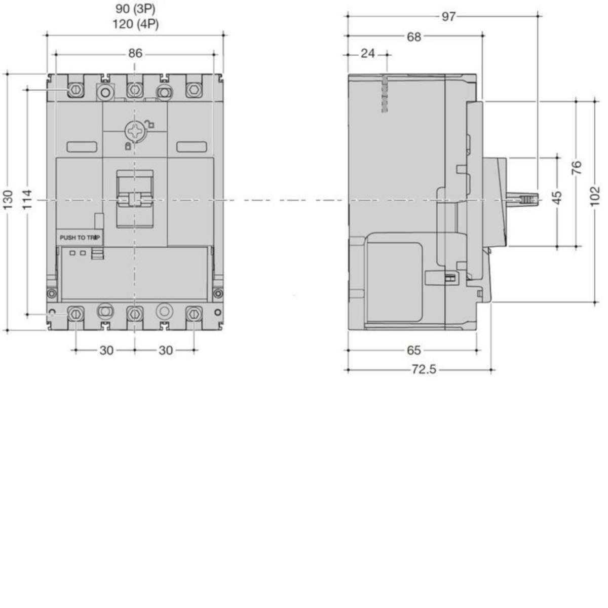 Kompaktikatkaisija h3+ p160 aset. TM-suojareleellä 3-napainen 25A 25kAKompaktikatkaisija standardin DIN EN 60947-2 mukaan suojaa sähköasennusta ja verkkoa ylikuormitukselta ja oikosuluilta. Ylikuormitusvirran terminen laukaisu (Ir) ja hetkellisen oikosulkuvirran magneettinen laukaisu (Ii) voidaan asettaa erikseen. Kolme erilaista toimintatilaa voidaan tunnistaa kytkimen asennosta (ON = ylös, OFF = alas, laukaisu = keskiasento). Laitteen vipu voidaan lukita ON- ja OFF-asentoihin vipuun integroidun toiminnallisuuden ja normaalin riippulukon avulla, ilman muita lisätarvikkeita. Irrotusmekanismia voidaan testata ja pääkoskettimet avata vapautuspainikkeella. Saranoitu kansi, jossa on kiinteä pikalukitusruuvi, mahdollistaa pääsyn asennustilaan erikseen tilattavien apukoskettimien ja laukaisimien asentamiseksi. Katkaisijan sisälle asennetut lisävarusteet voidaan havaita ja tunnistaa katseluikkunasta avaamatta saranoitua kantta.