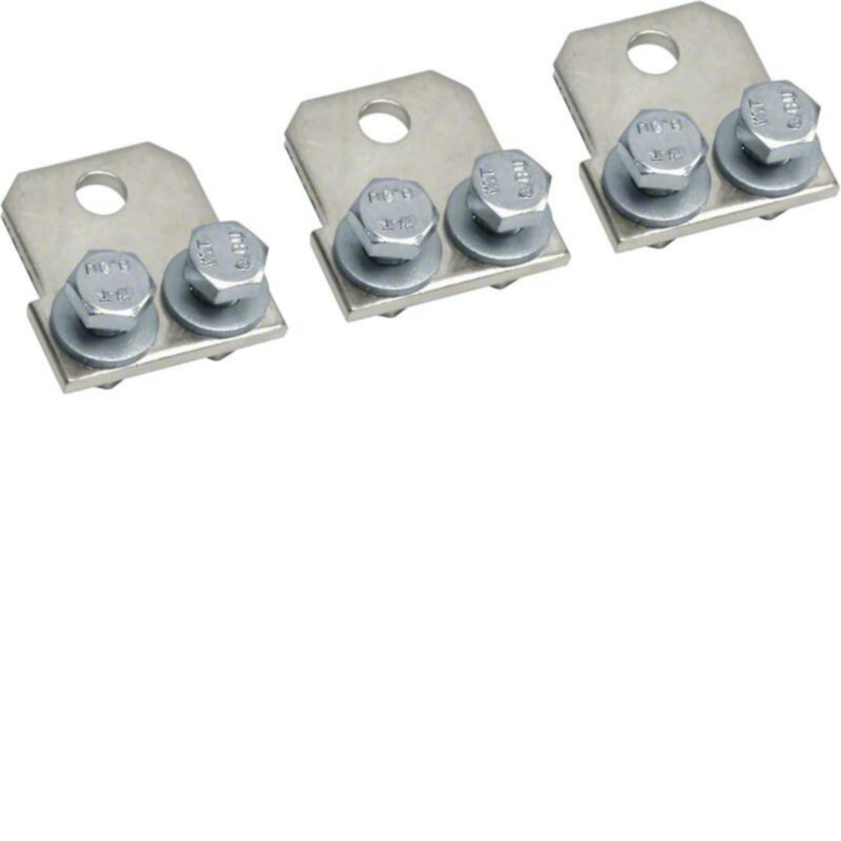 Kaksoisliitäntäpakkaus kaapeleille 2x35mm² jonovarokekytkimelle 00/185, pakkaus sisältää 3 kpl kaksoisliitäntälattoja lähtöjen kiinnityspulteilla ja aluslevyillä.
