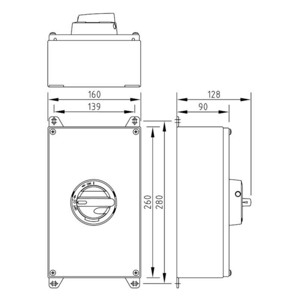 Sisältää:Kytkimen: KU 380N (3635104) | Kaapelin koko kytkentätilaan (vain Cu): 2,5-35 mm2 | Apukoskettimen: KU1V (3600490) Kaapeliläpiviennit: 2 x M40 (19-28mm) metalli + 1 x M16 (5-10mm) metalli