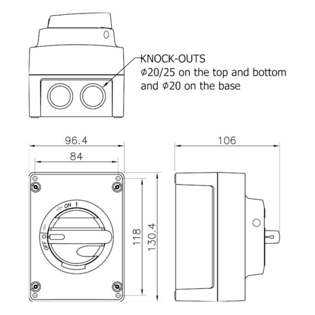 Muovikoteloitu 3-napainen turvakytkin AC-23 @ 400V: 10A / 5,5kW | AC-23 @ 690V: 10A / 7,5kWSisältää:Kytkimen: KU 310 | Kaapelin koko kytkentätilaan (vain Cu): 1,5-16 mm2 | Kaapeliläpiviennit: 2 x M20 (6-12mm) muovi Saatavilla erikseen:Suojalippa KSL 10 (3600594)