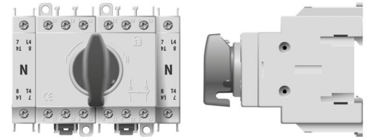 Verkonvaihtokytkin 4x63A DINDIN-kiskoon keskuksiin asennettava verkonvaihtokytkin pääkytkimen tilalle. Kytkimen leveys 8 moduulia. Jos keskuksessa ei ole tilaa, voidaan käyttää koteloitua verkonvaihtokytkintä.Käytetään generaattorin liittämiseksi kiinteään verkkoon sähkökatkoksen aikana. Kytkintä käytetään käsiohjauksella.Nimellisvirta 4x63ALeveys 8 moduuliaAsennus DIN-kiskolleJohtimen suurin poikkipinta 50mm²